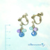 梅雨時にぴったり! 紫陽花カラーの天然石とシェルを集めたイヤリングです。 カット入りのカルセドニーは、発色の良いブルーカラーにフラッシュコーティングがキラキラ☆ カットの反射も加わり、ブルーの花びらに煌く雨粒のよう…!? パープルのシェルに入るマーブル模様も魅力的なアクセントです。 憂鬱になりがちな雨のお出かけのおともに♪ 夏にも、涼しげに♪ 合わせやすく、普段使いにおすすめです。 ★カルセドニー★ ・精神を安定させ、判断力、集中力を高めるとされる。 ・冷静に物事を判断できるように精神的な成長をサポート。 ・人間関係を改善し、心の安定感と癒しをもたらしてくれる。 ・優しさ、愛情を育む石。 【使用素材】 天然石 ラウンドカット フラッシュ・ブルーカルセドニー、ライトブルーカルセドニー シェル パープル×ホワイトマーブル 金具カラー:シルバー 【サイズ】 約1.8cm ※金属アレルギー、メッキ加工が肌に合わない方はご注意ください。 ※フックピアスにも変更可能です。