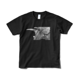 XLサイズ恐竜時代の終盤、北アメリカで強敵ティラノサウルス達と共に生活していたトリケラトプス。 短納期のTシャツのため、つくってからすぐ着たい!という人にもおすすめです。 素材:綿 100%(リングスパンコットン) 生地の厚さ:180 g/㎡ (5.3 oz per sq yd) カラー:ブラック 印刷:インクジェット方式 この商品はpixivFACTORYで作られた商品です。サンプル画像は完成イメージのため、実物と異なる場合があります。