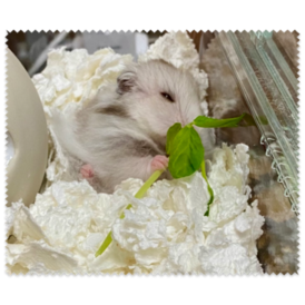 ※この商品はpixivFACTORYで作られた商品です。サンプル画像は完成イメージのため、実物と異なる場合があります。 【商品紹介】 我が家のハムスター、さとる君が大好きな豆苗を食べているところです。幸せそうに見える顔と仕草があまりに可愛くて、メガネ拭きにしてみました。
