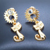 マットゴールドの猫と歯車のスチームパンク風スタッドピアス ポストピアス クリスタルガラス
