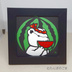 大きく切ったスイカに思いきりかぶりついて デスクの上などちょっとしたスペースに置けるコンパクトサイズです 一点ずつ心をこめておつくりしています アートフレーム込みのお値段です サイズ:80×80ミリ(フレーム外寸90×90ミリ) 使用画材:上質紙、タント他