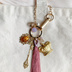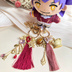 👑カラー ダンデのチャレンジャー、チャンピオン時代に思いを馳せてお作りしました。 なのでタッセルは赤に至る前、ピンクがかったパープルカラーをお選びしています。 王者の象徴たる王冠のモチーフと一緒に並べるならギルガルドしかいないなと、相棒を選びました。 王の素質を持つ人間を見抜き、認められた人はやがて王になると言われている。 図鑑へそんな風に記されているポケモンを連れている少年なんてチャンピオンになる未来しかないじゃないですか… ギルガルドはヒトツキの時代から、隣を歩む少年が王になると信じて支えて来たのかと思うと。 あの大きな目には戴冠したダンデの姿が見えていたのかと思うとー。 チャンピオンとして舞台に立ったダンデを目にした時、どれほどに誇らしかっただろう。 タイトルはmon reve、私の夢 です。 ダンデの夢、ギルガルドの夢。 きっと目指す先は一緒だっただろうと。 ダンデとギルガルドを見ていると、これほどに王と騎士と呼ぶに相応しいトレーナーとポケモンはいないなと思えます。 それとも、ヒトツキの頃は「小童め…」としか思っていなかったのかな。 それがいつの日からか、この人こそが王になるのだと、この人を私が王にするのだ、とヒトツキ〜ギルガルド側の意識が変わり始めたのだとしたら。 2人で共に成長し、チャンピオンを目指していたのであればそれはそれで推せますね… ※キーチャームに変更希望の際には別途ご連絡ください。 チャーム ・チャンピオンイメージパーツ ・ギルガルドイメージパーツ ・ダンデイニシャル ・太陽イメージパーツ ・若いころのダンデをイメージしたパープリッシュピンクのタッセル チャンピオンの象徴である王冠をメインに、小さな王冠を思わせるパンプキン型のマーブルパープルのチェコガラスを添えました。 王冠!とても大きいです!かわいい!👑笑 (手に持って10枚目の感じです) ギルガルドのパーツは本当はもっと大きな剣型のパーツだったのですが… 王冠と擦れ合って大きな音を立ててしまうので小ぶりなものに変更しました。 それでも妥協することなく、一眼で剣とわかる形のパーツをお選びしています。 ダンデのパープルカラーの印象が薄く寂しかったので、ラベンダーカラーのアクリルビーズをお付けしました。 オレンジのガラスのカボションには、太陽のフレアを思わせるセッティングを使用しています。 ダンデの瞳を思わせるカラーと、チャンピオン時代 偽りなくガラルの照らす太陽であった彼の功績を讃えて。 中に箔が入っているのでキラキラと光りとても美しい逸品です。 使用素材:真鍮、チェコガラス、アクリルビーズ、糸 ※ハンドメイド作品ですので、工場製品ほどの強度ではありません。 優しく扱っていただきますようお願いいたします。