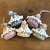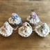 オーガニックコットンの糸で手編みしたカップケーキ型の巾着です。おひるねこを持ち運ぶために作りました。 キャラクターにより多少大きさが異なりますがセガ公式の全長約5.5cmまでは対応できると思います。 おひるねこ以外にも小さめのぬいやグッズ、ちょっとしたお菓子などの持ち運びにもお使いいただけます。 色は全5色でフルーツ染めの糸を使用しています。(留め具は本体の色の都合上、ピンクのみ緑の丸パーツとなっております。) 底板と、お外で撮影する際やお家で飾る際に使える丸型お座布団がセットになっています。巾着に入れて使用する際は底板を敷いてからお座布団を乗せてください。 底面直径約6cm。高さは口を閉じた状態で巾着部約5.5cm、丸い留め具部を含めると約7.5cmです。 ハンドメイドですので多少の大きさ、形等の違い、歪みがございます。作品の個性としてお楽しみいただけますようお願い致します。また引っ張ったり強い衝撃を与えないようご注意ください。 摩擦や疲労で紐が切れてしまう可能性があるため、大切なねこちゃんを無くさないよう鞄などに付ける際は内部に付けていただく事をおすすめします。 価格は1個あたりのものです。ごく簡単にですが画像のようにラッピングして発送致します。