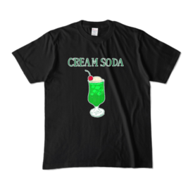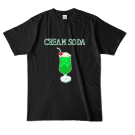 カラーTシャツ - XL - ブラック (濃色)タグ:昭和 レトロ 喫茶 スイーツ ジュース アイスクリーム ソーダ クリームソーダ 飲み物 カフェ 夏 懐かしい 暑い 涼しい 炭酸 沖縄 南国 トロピカル 海 ポップ ファンシー フード さわやか かわいい シンプル メロン インパクト メロンソーダ 80S