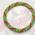 クロッシェは、その名の通り編むことです。 ビーズクロッシェは、糸にビーズを通してから編みます。 きちんと模様が出るようにビーズを通すのは、 機械ではできないので手作業です。気が遠くなるような作業です。 そんなこんなで、 一回り丸小ビーズ6個でブレスレットにしました。 細めですので、2本3本と重ね付けするのもお洒落です。 ゴムブレスレットとは違うので、装着にコツが必要です。 親指を手のひら側に折り曲げ手を細めて、 手のひらの上を転がすようにします。 親指の根本の関節が固く、 手をすぼめるのが不自由な方は装着ができません。 御自身の手と相談して、御購入を検討下さい。 ●大きさ● オレンジ:内円周15~16cm 赤×緑・水色系・薄オレンジ・緑:内円周16cm 廃番色等、製造中止になったビーズも遠慮使ってしまいました。 同じには作れませんので、各1点限りとなります。 気になる方はお早目の御購入を検討願います。