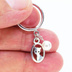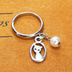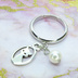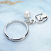 シルバーカラー 猫とスワロフスキーパールのチャーム付きリング フリーサイズ