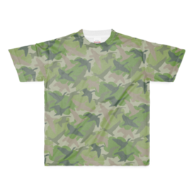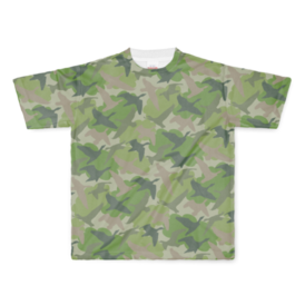 フルグラフィックTシャツ - S - 両面印刷雁で迷彩柄というリクエストで作成してみました☆ ----- ダークグリーン:オオヒシクイのシルエット 薄茶色:マガンのシルエット カーキ色:シジュウカラガンのシルエット 背景は雲を並べてみました。 ----- 雁迷彩シリーズはシャツ以外にもこちらに多数のアイテムがありますので、どうぞご覧ください。 https://suzuri.jp/KF-koubou/omoide/144732 この商品はpixivFACTORYで作られた商品です。サンプル画像は完成イメージのため、実物と異なる場合があります。