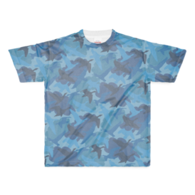 フルグラフィックTシャツ - S - 両面印刷雁で迷彩柄というリクエストで作成してみました☆ ----- 紺色:オオヒシクイのシルエット 水色:マガンのシルエット やや暗い青:シジュウカラガンのシルエット 背景は雲を並べてみました。 ----- 雁迷彩シリーズはシャツ以外にもこちらに多数のアイテムがありますので、どうぞご覧ください。 https://suzuri.jp/KF-koubou/omoide/144732 この商品はpixivFACTORYで作られた商品です。サンプル画像は完成イメージのため、実物と異なる場合があります。