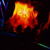 クリア素体の為、後から光を当てると線香花火が光ります。