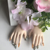 在庫がある物は1〜3日、無い物は新たに作成しますので、発送まで2〜7日程度かかります。 注文を多く頂いてる際には、更にお時間いただく場合も御座いますのでご了承下さい。 ネイルチップ、スカルプにつきまして、一つ一つ形を整えてお作りしております。 作品により、大きさ、厚み、硬さ、形や長さが多少異なりますのでご了承下さい。 お写真が旧作の物はデザインは同じですが、形や長さが現行の物に変更になってます。 アーチによりネイルシール一枚で密着しない場合は重ねて厚みを出すと付きやすくなりますのでお試し下さい。 チップが大きい場合、多少削って調節出来ますが 紛失や破損の恐れも御座いますので、ご購入者様の判断にて行なって下さいます様お願い致します。 チップは使用方法により長くご愛用頂けますが、着け外しでの破損や経年劣化を起こしますのであくまで消耗品である事をご理解下さい。 ニュアンス、グラデーションなどは作品により模様の入り方が変わり、お写真と全く同じとはなりませんのでご了承下さい。 お写真により、実際の色と多少異なる場合が御座います。 ストーンやパーツは取れる場合があります。 ハンドの交換や剥がす際に力がかかると破損する場合が御座いますので、お取り扱いにご注意下さい。 パーツは、チップのサイズや形、規格変更で変わる場合があります。 多少の気泡や、埃の混入、その他ミニチュアサイズである事で起こり得る問題はご理解頂きご購入ください。 ご購入者様都合のイメージ違いや、サイズ間違え等での返品交換は出来かねますので、よくご確認頂きご購入下さい。 発送について 送料無料の商品につきましては、普通郵便にて最安の発送方法をとらせて頂いております。 2点以上ご購入でクリックポストでの発送となります。 匿名希望の送料はご購入者様のご負担とさせて頂いております。 普通郵便では、こちらで日時と発送が間違いなくされた事の記録を付けておりますが、郵便局での記録追跡、保証無し、土日祝の配達が無く、お時間を頂く場合が御座います事をご了承ください。 発送後の事故、紛失の責任は負いかねますのでご了承下さい。 発送元は東京都もしくは千葉県となります。