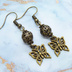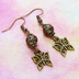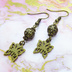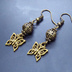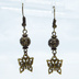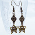 アンティークゴールド 蝶(バタフライ)とメタルビーズを組合せたコンパクトなピアス