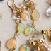 🧜♂️👑カラー 青年にとって自在に海を往く人魚は自由の象徴でした。 広く世界を知る人魚の言葉は青年の心を強く打ちました。 青年に外の世界を語る時の人魚の瞳はキラキラと輝きます。 海に焦がれる青年は、次第にその瞳が映すものを自身も目に映してみたいと思うようになりました。 一緒に海へ行けたらいいのに、そう人魚は喉を震わせます。 けれど人々は言います。 嗚呼、なんて恐ろしいんだろう。 人魚なんて野蛮な生き物だ。 あの声に耳を貸してはいけないよ。 海の底へ攫われてしまうよ。 ある日、青年は不思議な色をした鱗を手にしました。 それは見たことも無い光沢を放っており、どんな宝石よりも美しく輝きます。 ーなんて美しいんだろう。 人魚が、それは人魚の鱗だと教えて寄越します。 青い海の中、太陽の光を纏いながら人魚の尾が翻る様を想像して青年は胸を高鳴らせました。 そっと懐へ仕舞われたそれは、誰にも言えない青年の宝物になりました。 ‧✧̣̥̇‧✦‧✧̣̥̇‧✦‧✧̣̥̇‧✦‧✧̣̥̇‧✦ 皆さまが思うダンデの尾びれは 淡い菫色? 光を纏う真珠色 でしょうか? どれも素敵で、どれとも迷いました。 わたしは自身から光を放つようなイエローオパールを選びました。 イエローのオパールはホワイトのオパールとは少し異なった光り方をします。 それを楽しんでいただけたら幸いです。 柔らかく光を内包して、ギラリとグリーンやピンクのファイアが浮かび上がります。 太陽光の下で写真を撮れたら良かったのですが…!お天気が悪く…!陽が差さずで…! 現物は写真よりもっとファイアが豊かです。 ((ホワイトオパールの鱗が気になる、という場合にはご相談ください)) ‧✧̣̥̇‧✦‧✧̣̥̇‧✦‧✧̣̥̇‧✦‧✧̣̥̇‧✦ 去年に皆さまの人魚ンデをお見掛けして…! あまりの良さに滾りながらも、絵や文章でリビドーを発散する術が無かったわたしは……!!! ダンデの鱗を探さなきゃ!と 謎の使命感に駆られ…!!!((?)) ダンデの鱗は絶対にイエローがいい!と あちこちを探し回ってようやくイエローオパールの特殊カットのこの子と出会えたのでした。。