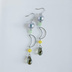 光が当たるとブルー系のラメ光るメタリックグリーン系のシャイニーパールに三日月フレームやしずくビーズなどを合わせた揺れるタイプのお洒落なピアスとなっております☆ メインのお色はまるで菜の花畑のようなグリーンとイエロー色の2色、シルバー金具に合わせて爽やかな色合いにまとめました☆ ちょっぴりロングサイズの作品となっておりますので、揺れるタイプの作品がお好きな方には特におすすめの作品となっております☆* ☆しずく型チェコビーズ オリーブラストラスター 9x6mm ☆シャイニーパール やなぎば ルミナス/ラウンド型 8mm玉 ☆ガラスビーズ オペークイエロー ボタンカット 4mm ☆ガラスビーズ ミルキーグリーンシャンパンラスター ボタンカット 4mm ☆三日月フレーム シルバー ☆スペンサー シルバー ☆9ピン ☆丸カン ☆三角カン ☆ピアス用金具(フック式☆シルバー) 長さは約6.5cmとなっております。(1cm程のピアス金具を含む)