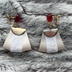 ボクラノキセキのモースヴィーグのユージンの騎士たちをイメージしたピアス/イヤリングです。 大きくゆらゆら揺れるモチーフのパーツは作中の衣装をグリーンと白のリボンで表しています。 グリーンのリボンは他のキャラクターと柄がお揃いになっています。 単体でももちろん、他のキャラクターと組み合わせての使用もお楽しみ頂けます。 耳元はキャラクター達のピアスをイメージし、クリアと銀のパーツで彩ります。 金属パーツはピアス/イヤリング部分はアレルギー対応品ですが、モチーフ部分は非対応です。 イヤリングは写真4枚目のようなネジバネ式です。 (耳につけた際パーツは正面を向くようになっています) モースヴィーグ騎士イメージとピアスorイヤリングを合わせてご購入をお願い致します。 イヤリング:横3.5cm×縦5.5cm ピアス:横3.5cm×縦5.0cm