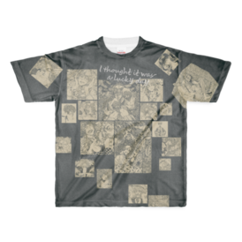 フルグラフィックTシャツ - L - 正面印刷のみ蟹井の描いたお気に入りのモノクロペン画をコラージュしたTシャツです。 モノトーンコーデにも、派手コーデにも合わせやすい! お手元でぜひ! この商品はpixivFACTORYで作られた商品です。サンプル画像は完成イメージのため、実物と異なる場合があります。