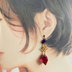 イロアソビ 秋の薄明空 クランベリーピンクとオレンジピンクガラス ピアス イヤリング