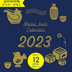 酩酊女子2023年カレンダー。 今回は紺色のファンシーペーパーに金インクで酒器をいろいろ刷りました。