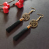 【チャイナ】双喜紋とタッセルのピアス(深緑)【ダブルハピネス】【中華風】
