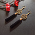 【チャイナ】双喜紋とタッセルのピアス(黒)