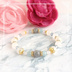 ご覧頂きありがとうございます! こちらはFate/Grand Orderに登場するオベロンの第2再臨をイメージして作成したハンドメイドの天然石ブレスレットです。 ☆サイズ 内径(内周)約15cm前後 伸縮性のあるオペロンゴムを2重に通しています。 【使用した石/石の言い伝え】 ◇クラウディクォーツ 8mm (心身のバランスを取る、気持ちを落ち着ける後押し、邪気祓い) ◇ムーンストーン 8mm 【6月の誕生石】 (直感やインスピレーションを高める、健康、愛する人との出会い、恋愛成就、愛を伝える) ◇ホワイトジェード 8mm&4mm ◇アクアマリン 6mm 【3月の誕生石】 (海のような癒し、勇敢、聡明、若さ、幸福、富、生命、円満なコミニュケーションのお守り、幸福な結婚・結婚する人への贈り物、航海のお守り、海や水と関係の深い石) その他一部にチェコガラスビーズ、メタルパーツ等を使用しております。 (※金属アレルギーの方、使用素材がお肌に合わない方はご注意下さい。) ◆金属パーツには変色防止の専用コーティングを施しております。 (※永久的に変色を防ぐというものではございませんので予めご了承下さい。) ◆発送は定形外の特定記録郵便(簡易的な追跡あり)を予定しております。 お急ぎの方や、より良い追跡・補償のある発送方法をご希望の方はお手数ですが必ず購入前にご相談下さいm(_ _)m 丁寧にお作りしておりますが、強い衝撃や汗・水分・皮脂等が付いたままの放置は苦手です。ご使用後は柔らかい布で優しく拭いてお手入れして頂く事をおすすめ致します。 使用している素材にはお色味の濃淡や小さな傷、凹み、内包物等含まれる場合がございます。素材の特徴としてご理解を賜われますと幸いです。 その他にも何か気になる点がございましたらどうぞお気軽にご質問下さい!