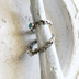 日本画の波模様にアイデアを得て 唐草リングにしました。 石も水色でまとめてみました。 最初に濃い水色の、シーブルーカルセドニーバージョンを作ってみて。 (小指着用写真のもの) 次に淡い水色のブルージルコンで制作してみました。 (人差し指着用写真のもの) 写真でアップしていない石でも、手元にあればすぐご提案できますので。 お問い合わせください。 私の作る物の中では細目のリングですので。 シンプルなリングで挟んで重ね着けなどもいいと思います サイズオーダーしていただけます。 石の在庫は シーブルーカルセドニー 5個 ジルコン 2個 になります。 ご注文頂いてから、制作いたしますので お時間頂いております。 リング本体:SV950銀 石枠:純銀 石:シーブルーカルセドニー ブルージルコン 直径4㎜