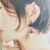 再販 イロアソビ 紫花と揺れるガラスチャーム ピアス イヤリング