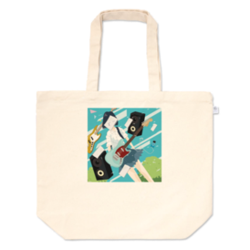 トートバッグ - L - プリント面積中イラスト「空と青」を全面に配置したトートバッグ。 爽やかな印象のアイテム。