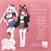 2024/07/29 ver.1.1.0 Unity2022対応、モデル及びMaterial、Texture等最適化(上書き不可です) 2024/05/31 フルセットにももね追加(単品販売は別ページ) https://himeso.booth.pm/items/5745338 2023/06/30 あまとうさぎ シフォン、ライム対応 ※販売は別のページになりフルセットにも含まれませんのでご注意ください。 https://himeso.booth.pm/items/4667977 2023/06/29 きゃったまのみせ アップル1.50 レモン1.10対応(きゃったまボディ1.2) 2023/04/19 Petite Rabbit シェルロップ追加