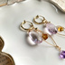 👑カラー 大粒のピンクアメジストがメインの作品です。 幸運なことに、とても美しいアメジストとご縁をいただくことが出来ました。 出逢った時にはもうバイヤーさんのお手元にも残っていなくて。 それでも一目惚れして、どうにか数粒でも譲ってもらえないかと交渉したピンクアメジスト。 ダンデを好きになってからたくさんのアメジストを巡り、探して、求めて来ました。 だからこそ出逢えた色です。 ダンデが引き寄せてくれた石とのご縁。 今年の集大成のひとつとして皆さまにご紹介出来ることがとても嬉しい子でもあります。 今ではあまり見掛けないほどの大胆な大きさと、丁寧なハンドカットが施された逸品はオールドストック品ならではの品質です。 花びらのように可憐で甘いピンク色は沫雪のように溶け出してしまいそう。 そこへ2人の色のオレンジとパープルを添えました。 作品名は"Intimités"。 フランス語で"親密さ"を表す言葉です。 いつか、この単語に見合う作品を作りたいとずっと思っていました。 それにはこのピンクアメジストの色がぴったりでした。 揺れる2人の上にまるで沫雪のように優しく包み込むような時が降り積もりますように。 少しずつそこに信頼と親愛が生まれ、心に秘めたものすら打ち明け合える仲になれますように。 ◼️チャーム2点 ※6枚目、7枚目の写真はコーディネイト例です。 ※8枚目 着用イメージです。 私はお着替えKDのBを一緒に着けることが多いです☺️ 使用石: ピンクアメジスト 2センチ ブランデーシトリン アメジスト ブラウントパーズ 全長: チャームのみ約6㎝ 素材: 14kgf ※ハンドメイド作品ですので、工場製品ほどの強度ではありません。 優しく扱っていただきますようお願いいたします。 ※天然石には、クラック(ヒビ)や、欠け、色ムラが見られる場合がございます。 素材の魅力としてご理解いただけましたら幸いです。