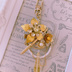 □刀剣乱舞「髭切・極」 ※こちらは金具を付け替えるだけでヘアクリップやバッグチャームになる作品です。ヘアクリップ形態(画像1)バッグチャーム形態(画像3) サイズ 全長:約10.3cm(ヘアクリップ状態の場合) 約14.6cm(バッグチャーム状態の場合) 重さ:約21.3g(ヘアクリップ状態の場合) 約26.7g(バッグチャーム状態の場合) スワロフスキー(#2088):8mm スワロフスキー(#5328):4mm クリップ土台:約4.3cm 透かしパーツ:40mm メタルフラワー:47mm,27mm,26mm,17mm,16mm 刀チャーム:6.6cm ドイツビーズ:34×11mm バッグチャーム用金具:約5.1cm ※画像とは多少色合い等が異なる場合が御座いますので、予めご了承下さい。