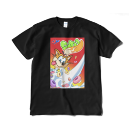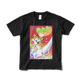Tシャツ(短納期) - XL - ブラックシリアルのパッケージ風デザインのTシャツです。 日々をおいしく彩りましょう! This T-shirt has a cereal package style design. Let's color our days tasty! この商品はpixivFACTORYで作られた商品です。サンプル画像は完成イメージのため、実物と異なる場合があります。