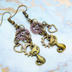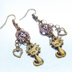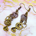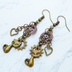 アンティークゴールド 猫と歯車を組合せたコンパクトなピアス アンティークブロンズ スチームパンク風