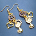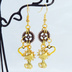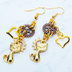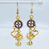 マットゴールド 猫と歯車を組合せたコンパクトなピアス アンティークブロンズ スチームパンク風 サージカル可