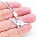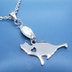 ステンレス製 猫シルエットとハートを組合せた可愛いチャームとスワロフスキーのネックレス ダイカット アジャスター追加可