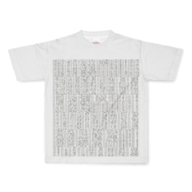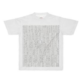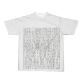 フルグラフィックTシャツ - L - 両面印刷英単語の暗記が苦手な子用に、着る単語帳Tシャツを作りました。暗記は普段から見慣れていることが大事。 ハンガーで吊るしておいて、いつも見られるようにしてもよし、家族や友達に着てもらって見て覚えるのもよし、着た人から問題を出してもらってもよし。使い方はいろいろ。 注 aとeとoの区別がちょっとつきにくいかもしれません。 この商品はpixivFACTORYで作られた商品です。サンプル画像は完成イメージのため、実物と異なる場合があります。