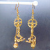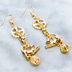 マットゴールド のび猫と歯車のスチームパンク風ピアス ロングピアス バー スティック ぶら下がり メタルビーズ