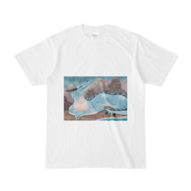 Tシャツ - XL - 白この商品はpixivFACTORYで作られた商品です。サンプル画像は完成イメージのため、実物と異なる場合があります。 オリジナルイラストを使用したTシャツになります。 ドラゴンの生命力を、光を受けて輝く鱗で表現しました。