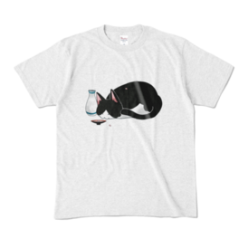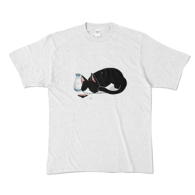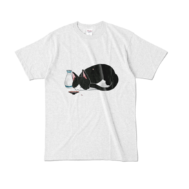 カラーTシャツ - XL - アッシュ (淡色)この商品はpixivFACTORYで作られた商品です。サンプル画像は完成イメージのため、実物と異なる場合があります。 日本酒とハチワレ猫のTシャツです。 ※白く彩色した箇所(徳利や猫の顔、お腹)がグレー寄りになっているようです。