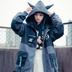 Jillpunk 芝麻コラボ アニメ Y2K お宅 ニ次コン ワークスペック風 エジプト神話ベビー アヌビス キルティング ゆったりパーかー 狼耳 フード付きジャケット オリジナル メンズ レディーズ おしゃれ 男女兼用 ファッション 秋葉系 可愛い