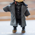 ねんどーる・オビツ11向けロング丈のコートです。 (身長調整さんが着用しても長めのお作りです) ※コート単品の販売で、小物やその他のお洋服、ドール等は付属しませんのでご注意ください。 ※画像1枚目が実際のお色に近いですが、閲覧環境によって差がございますのでご了承くださいませ。 ※今回襟の型紙を見直しリニューアルしました。首に沿うようになり前回より着せやすくなりました。 ※発送は2/28以降順次行い、最終発送日3/7の予定です。宜しくお願いします。 お色は2色ございます。こちらは【グレーチェック】です。 ※千鳥格子柄よりも厚手の生地です。関節弱い子は生地圧に負けて関節が抜けやすい可能性がございますのでご注意ください。 肩周りを大きくとっているので、中に長袖のお洋服を着る事も可能です。 (厚すぎなければニットも着用できましたが、裏地はついていないので摩擦による毛玉の発生にご注意くださいませ) インナーは長袖推奨です。コートのサイズ感大きめなので、インナーが薄着だと安定しない場合がございます。 襟と袖の一部はコーデュロイ生地の黒を利用しております。 ポケットは飾りです。 ダブルコート風に前に2つボタンをおつけしました。 大きめでストレートなシルエットにこだわって制作しました。 冬のお出かけのお供にご利用頂けましたら嬉しいです。 ■注意事項■ □全て素人が手作業で制作しているものになります。 精一杯丁寧に制作しておりますが、大きさや加工の加減、柄の出方など個体差もございます。 □部分的に縫製用の接着剤を使用している箇所がございます。 □ 濃い色のお洋服はドール本体に色移りする可能性がございます。特にねんどーるは色移りしやすい素体なので、着せっぱなしにしない様ご注意ください。 □当方のお洋服を着用した事による損害の補償はできかねますのでご了承ください。 ご理解いただける方のみご購入いただきます様お願いいたします。