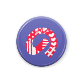 柄文字缶バッジ 「の」 (赤×青紫)