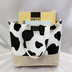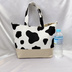 牛柄ベージュ(作業着イメージ)verです。 シンプルな造りのトートバッグです。 マグネットボタンで開閉できて、中にポケットがひとつついています。 たて:24cm よこ:35cm マチ:12cm 平らにして置いた時のサイズです。 ※多少の誤差はあるかもしれません。 撥水・防水加工はされてません。 両端にDカンをつけてありますので、お手持ちのショルダーヒモがあれば2way仕様にできます♪ 持ち手が長めなので、ショルダー紐なしでも肩にかけやすいかと思います(^-^)/ お散歩や軽いお出かけ、送迎など、日常使いに使用しやすいサイズ感かと思います。 B5サイズのノートを横にして入れると余裕があるくらいすっぽり入ります。 A4サイズは横入れだと厳しいですが、縦にすると頭が少し出ます。 容量&大きさイメージ用に500mlのペットボトルを写真に添えていますのでご参照ください。 丁寧に作っていますが、素人の趣味によるハンドメイド作品です。 縫製の歪み、ほつれ、わずかなシワ等至らぬ部分もあるかと思います。 ご了承頂いた上でご検討お願いいたします。 発送時折りたたんで梱包しています。たたみじわなどあるかもしれません、ご理解ください。 ※ひとつひとつ手作りのため、柄には個体差があります。 ※在庫僅少です 手持ちの布在庫が終了したため、再販予定はありません。