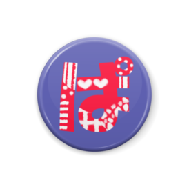 柄文字缶バッジ 「ぱ」 (赤×青紫)