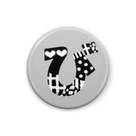 柄文字缶バッジ 「び」 (黒×グレー)