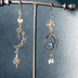 夜の魔術部 天体観測 月と星の戯れ ピアス イヤリング 5000円以上お買い上げごとにプレゼントをお付け致します(1万円以上の場合のプレゼント内容はプロフ記載しています) 立体デザインです 一枚目 左 ビジュー付き月チャームから透かし模様の星をたらし 右 高品質ビジューコネクターから 立体リングの中に 青オーロラの星形ガラスを入れ 先端にオーロラカットドロップを垂らしました 樹脂イヤリング ねじばねイヤリング バネフープイヤリング 樹脂フックピアス チタンフックピアス チタンピンピアス 14kgf 変更 必ずオプションよりお選びください パーティ 綺麗 大人 可愛い 華やか イベント 大人綺麗 かわいい しずく シンプル 差し色 アンティーク ガラス ドロップ プレゼント 月 星 天体観測 惑星 金星 悪魔 パンク ゴシック スチームパンク ホラー ハロウィン スチームパンク ゴシック 吸血鬼 ヴァンパイア 幻想的 悪魔的 パンク ゴス ローズ トランプ ハートの女王 魔法 魔術 呪術 妖術 ドラゴン ドラコニア 龍 コスプレ 海 貝 魔女 湖 森