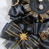 ハンドメイドのロゼットです☆ ◆57mm~60mmの缶バッジに対応しています。それ以上のサイズでも取り付けできますが、内側のプリーツが隠れてしまう可能性があります。 落下防止ループと磁石で取り付けできます。 裏面にはゴールドハート型のナスカンと安全ピン付きです。 ◆ブラックとゴールドメインで作成しました。キラキラレース等で飾りました。 ◆注意 ・接着はグルーを使用しております。注意してはいますが、グルーのはみ出しや糸引き跡がある可能性があります。 ・写真と実物とで色味が異なる場合があります。 ・強い衝撃を与えると壊れてしまう可能性がありますのでご注意ください。繊細に扱ってあげてください。 ・配送中にパーツが外れてしまっていた場合、お手数ですが、手芸用の接着剤等で付け直しをお願い致します。 ・缶バッジは付属しません。 ・作品の盗作や模倣はお辞めください。 ・お手数ですがプロフィールもお読みください。 痛ロゼット ロゼッタ 黒 ブラック 金 ゴールド ハート