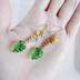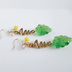 プチプチした形状が可愛いマスカットグレープのようなチェコビーズをメインに上側で小さめビーズのビーズ達がちょこんと可愛く揺れるジグザグの心電図風パーツと合わせた遊び心をプラスしたユニークデザインのお洒落ピアス/イヤリングとなっております☆ メインのお色は瑞々しいグリーンとイエロー色、ゴールド金具と合わせて温かみのある爽やかな雰囲気でまとめました☆ グリーン色がお好きな方にはもちろんや揺れるタイプの作品がお好きな方、マスカットのモチーフがお好きな方にもおすすめの作品となっております。 アレルギー対応のピアスやイヤリングへの変更についてはご注文時にオプションよりご希望金具をお選び下さい ※こんな方におすすめ♪ *大切な方へのプレゼントに *マスカットモチーフがお好きな方に *揺れるデザインの作品がお好きな方に ☆チェコビーズ グレープ/マスカット ストロベリー 約10mm ☆ガラスビーズ オペークイエロー ボタンカット 4mm ☆ガラスビーズ ミルクベージュ コインカット 4mm ☆心電図風パーツ ゴールド ☆Tピン ☆三角カン ☆丸カン ☆ピアス用金具(フック式☆ゴールド) 長さは約5.5cmとなっております。(1cm程のピアス金具を含む)