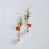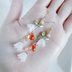 お洒落なリーフパーツにぷっくり可愛いしずくとホワイト色のすりガラス風のすずらんビーズがそれぞれ揺れるチェーンを合わせ、更にもうひとつ重ねる様にすずらんビーズを合わせた春にぴったりの上品なデザインの作品となっております☺ メインのお色はまるで春に咲くお花のようなピンクとホワイト色の2色、ゴールド金具と合わせて可愛くて優しい色合いにまとめました☆ 可愛らしいピンクやオレンジなどの暖色なホワイト色がお好きな方にはもちろんやロングタイプの作品やすずらんモチーフの作品がお好きな方にもおすすめの作品となっております☆ 揺れ感たっぷりの作品となっておりますのでアップスタイルやミディアムヘアなどと合わせてご着用頂くとピアスがアクセントになってとっても素敵だと思います☺ アレルギー対応のピアスやイヤリングへの変更についてはご注文時にオプションよりご希望金具をお選び下さい。 ※こんな方におすすめ♪ *大切な方へのプレゼントに *フラワーモチーフやしずくビーズがお好きな方に *ホワイトやピンク色がお好きな方に *揺れるロングピアスがお好きな方に ☆すずらんのアクリルビーズ すりガラス風 ホワイト 約8.5x10mm ☆しずく型チェコビーズ サンセット・デュアルコート 9x6mm ☆チェコビーズ オパールピンク ラウンド型 4mm玉 ☆ガラスビーズ ピンクオーロラ ボタンカット 4mm ☆ファイアポリッシュチェコビーズ ライトピーチ 4mm ☆ファイアポリッシュチェコビーズ クリア パステルピンク 4mm ☆リーフパーツ グリーン 約12x21mm ☆スペンサー ゴールド ☆チェーン ゴールド ☆9ピン ☆Tピン ☆丸カン ☆三角カン ☆ピアス用金具(フック式☆ゴールド) 長さは約6.5cmとなっております。(約1cm程のピアス金具を含む)