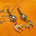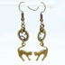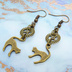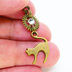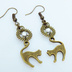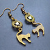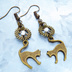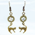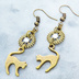 アンティークゴールド 跳ね猫モチーフと歯車を組合せたシンプルなピアス クリスタルガラス