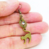 跳ね猫モチーフに歯車モチーフを組合せたコンパクトでシンプルなピアスです 歯車の中心部にはクリスタルガラスをはめ込んでキラキラ光る輝くをプラスしています アンティークゴールドカラーで統一することで落ち着きと優しさを合わせたアクセサリーに仕上がっています コンパクトなピアスでジャマにならず、普段使いはもちろんのことちょっとしたお出かけにも気軽にご利用いただけます 歯車を使用しているのでスチームパンクなアクセサリーに挑戦したい方にもおすすめです ※モチーフは亜鉛合金にメッキ、金具はスチール製ですので金属アレルギーの方はご注意ください ※こちらはフックピアスをネジバネ式イヤリング(アンティークゴールドカラーの丸皿タイプ)に変更が可能です ※別カラーバージョンもございます 「素材」 モチーフ:亜鉛合金:メッキ加工 クリスタルガラス スチール等(ピアス金具など) 「寸法」 全長(ピアス部含めず):約32mm 猫サイズ:約15mm×14mm 歯車サイズ:直径約12mm 重量:(ピアスの場合・1個で) 約1.97グラム 【ご注意】 ※ご使用のモニターの色の違いにより、実際の商品と色味が若干異なる場合がございます。 NN-ER311